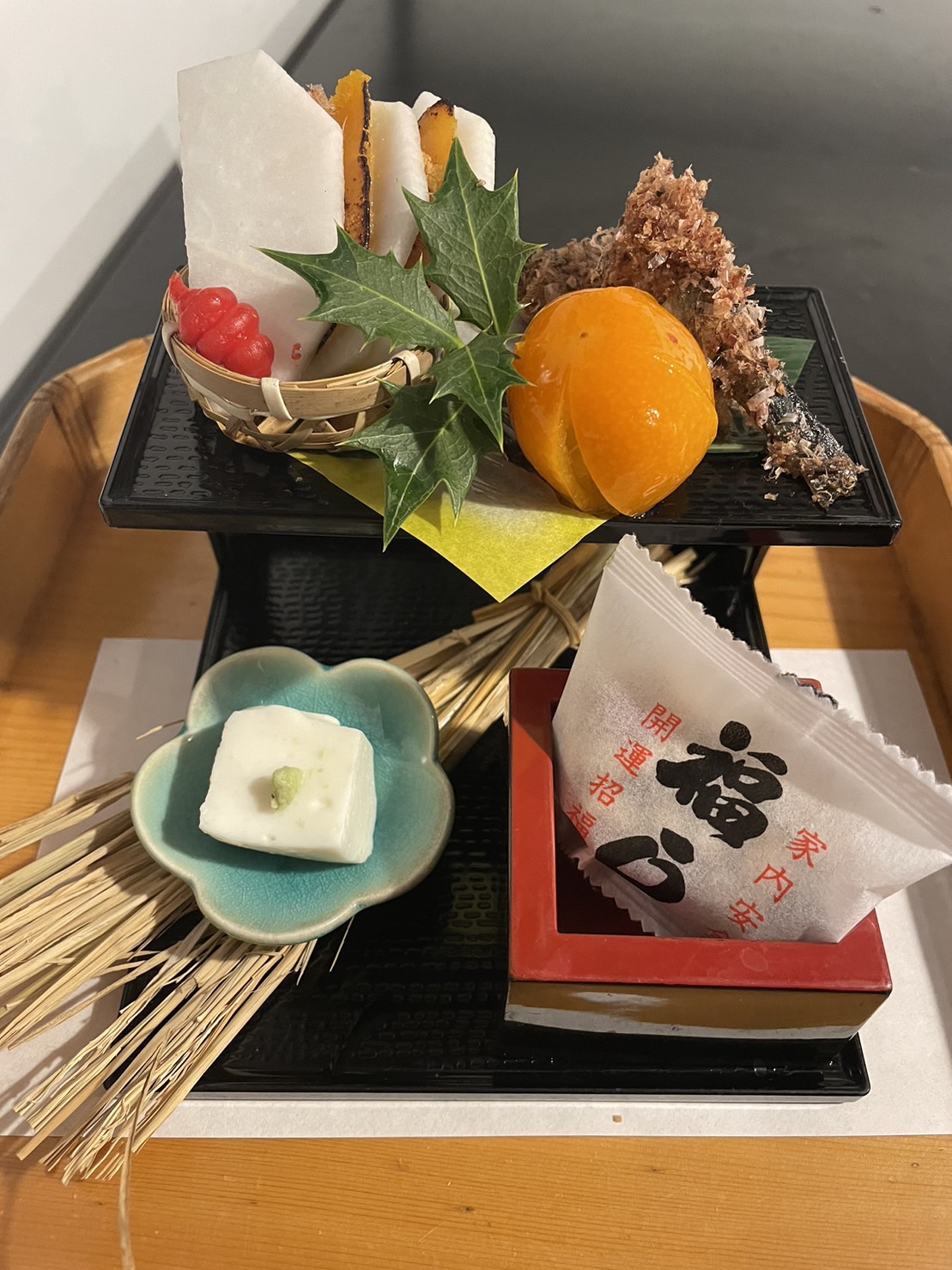 まだまだ寒い日が続きますね。今月は体の中から暖まるお料理です。酒膳は節分につきものの福豆、目ざしの代わりに銚子の鰯の土佐煮を。