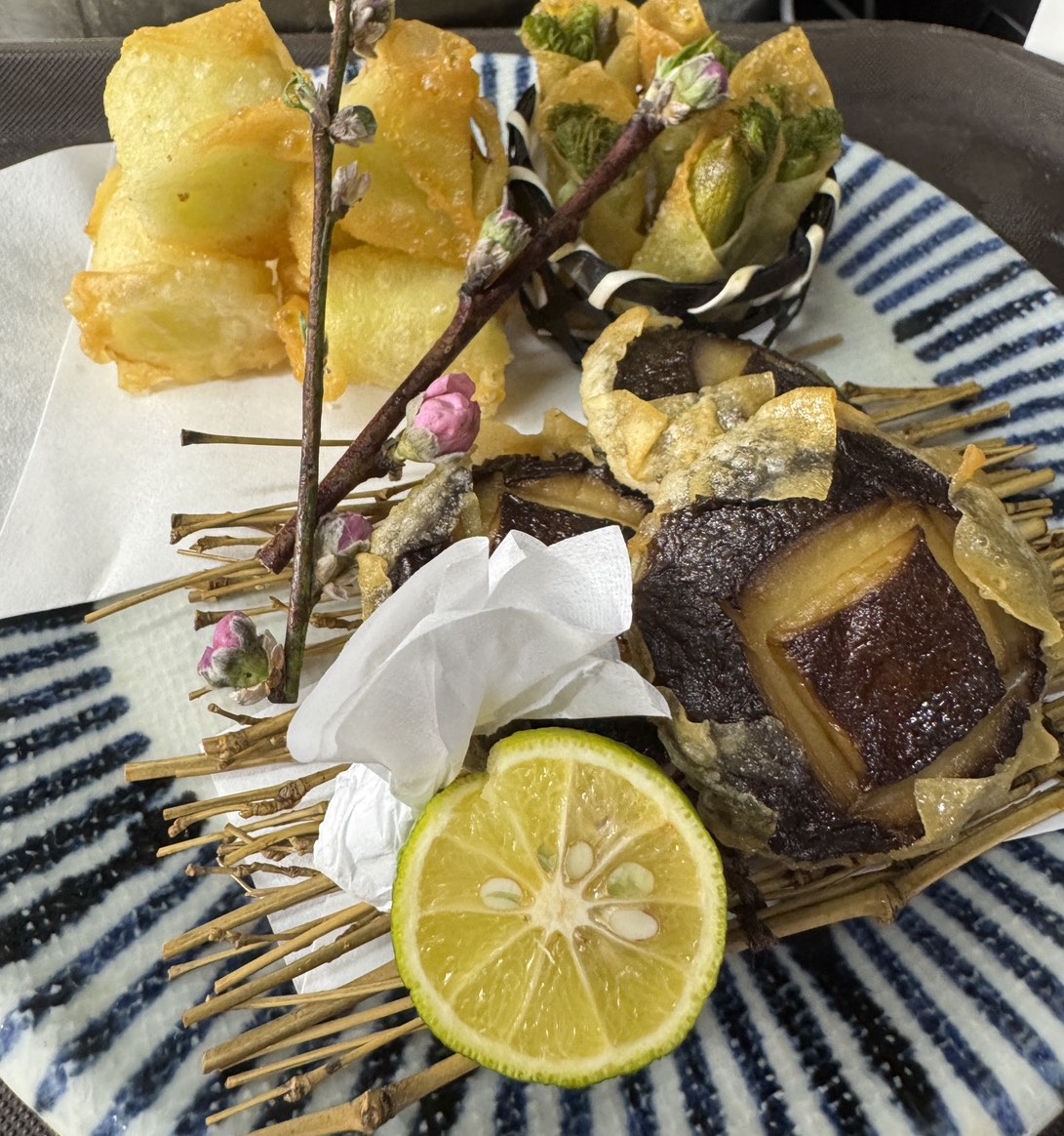 ふの揚げとは千利休が好んだ小麦粉を薄く焼いた「ふの焼き」をイメージした揚げ物です。